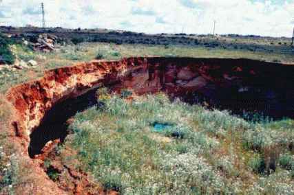 Grande voragine che nel mese di febbraio 1999 si aprì improvvisamente nelle campagne vicino a Grosseto, per uno crollo di profonde cavità carsiche